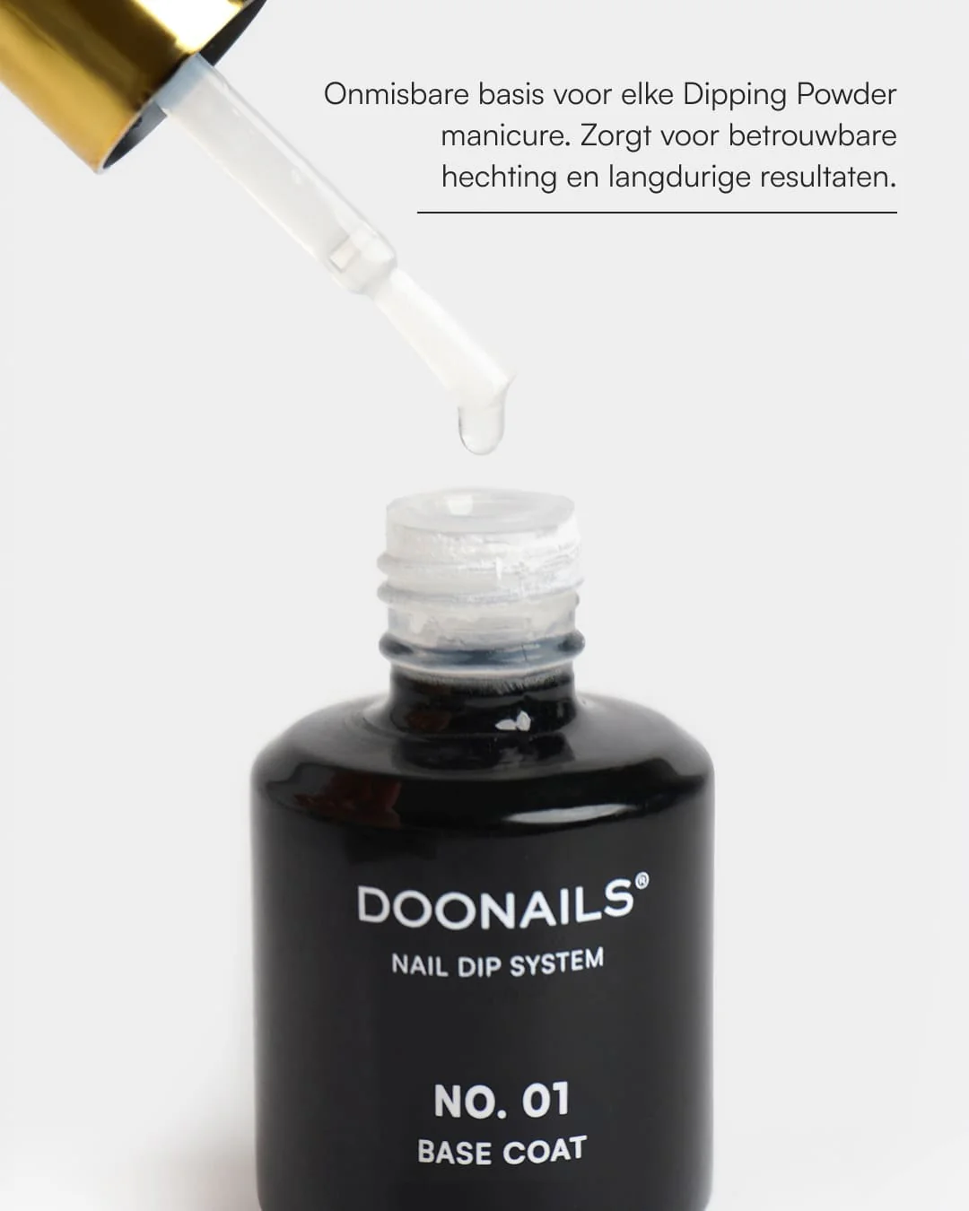 De Doonails Base Coat is de eerste en absoluut onmisbare stap van je Dipping Powder manicure – alleen hiermee bereik je een langdurig en egaal resultaat. Hij beschermt je natuurlijke nagel betrouwbaar tegen verkleuringen, zorgt voor een stevige basis en vormt de perfecte verbinding tussen de nagel en het Dipping Powder.